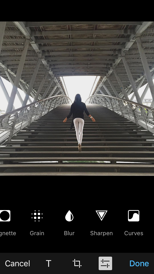 The in-app Photo Editor for iOS was updated with tools to adjust an image's tint, fade, and curves. The existing shadows and highlights tools default to 50% and are now functional in both directions.