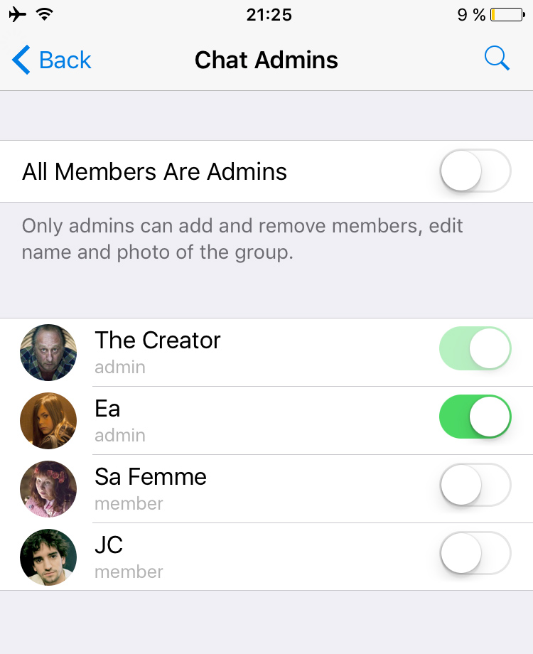 From now on, you can choose how your groups will operate. By default, all members are still in control. But if you want more order, you can throw the switch and appoint additional administrators to your group.